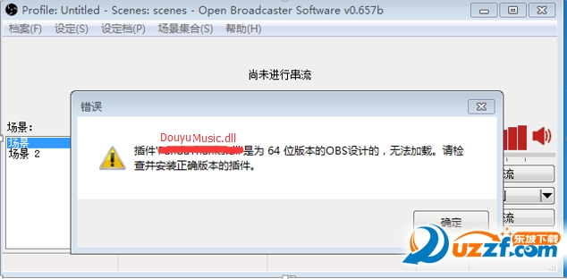 (3) 插件DouyuMusic.dll是为XX位版本的OBS设计的,无法加载。请检查并安装正确版本的插件