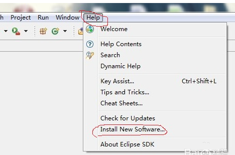1、打开Eclipse 3.7 ,选择菜单栏help》 install new software。操作如图: