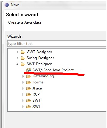 3、新建Project/other/SWT/JFACE JAVA PROJECT (或者其他的项目)