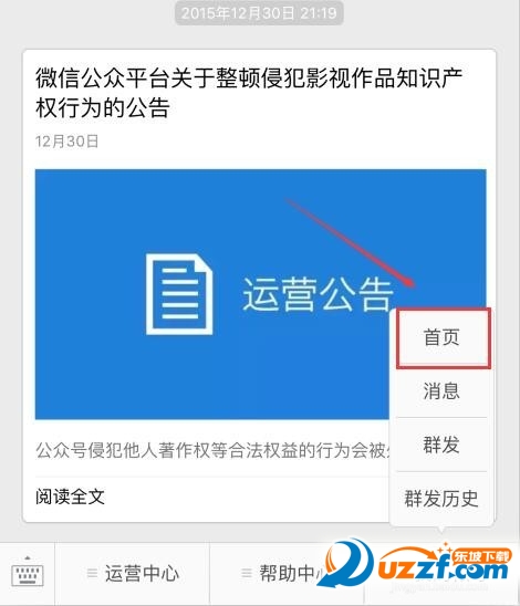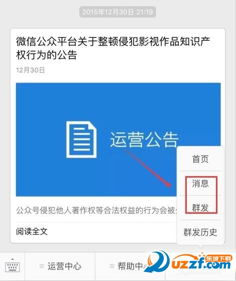 在右下角点击【我的帐号】,在这里你可以进入微信公众的首页、查看消息、群发文章、还可以看群发历史