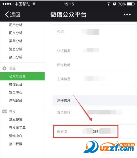 将页面拉到最底端,就可以看到注册信息下面有一个原始ID,我们一定要把这个原始ID记住。