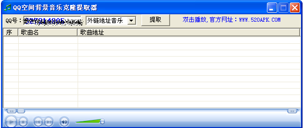 使用方法非常容易,打开软件,然后输入QQ号码,点提取,就能提取到输入QQ号码的空间的音乐了。