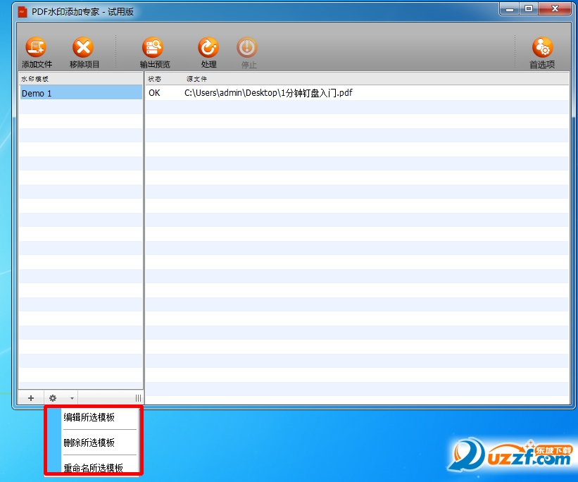 3、支持自定义多种模版,不同PDF文件项目可以随时添加不同的水印文字等信息。