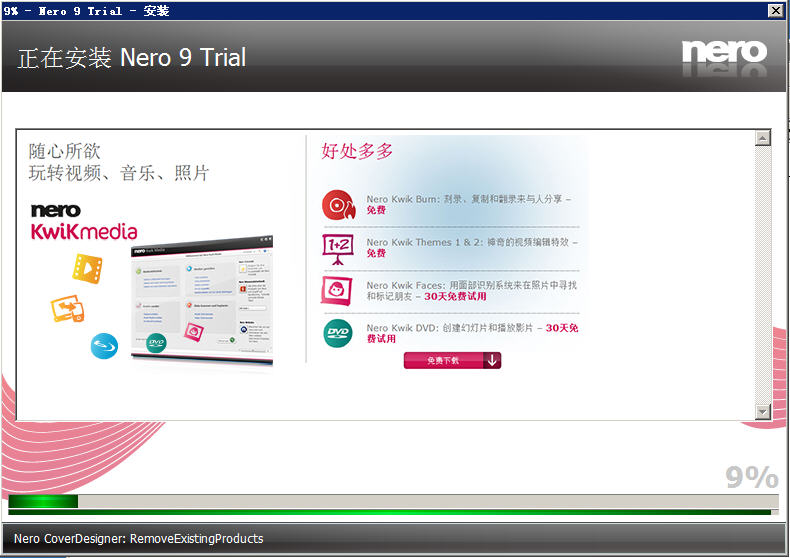 nero9.4.44.0b中文破解版是一个完整的Nero 9包,包含以下19个实用的组件:,Nero StartSmart,Nero Express ,Nero ShowTime,Nero CoverDesigner ,Nero Live,Nero Vision ,Nero DiscCopy Gadget,Nero DiscSpeed ,Nero Live Gadget,Nero DriveSpeed ,Nero WaveEditor,Nero BurnRights ,Nero SoundTrax,Nero RescueAgent ,Nero Recode,Nero InfoTool ,Nero PhotoSnap,Nero InCD ,Nero PhotoSnap Viewer,Nero ProductInstaller ,Nero Burning ROM,Nero ControlCenter。