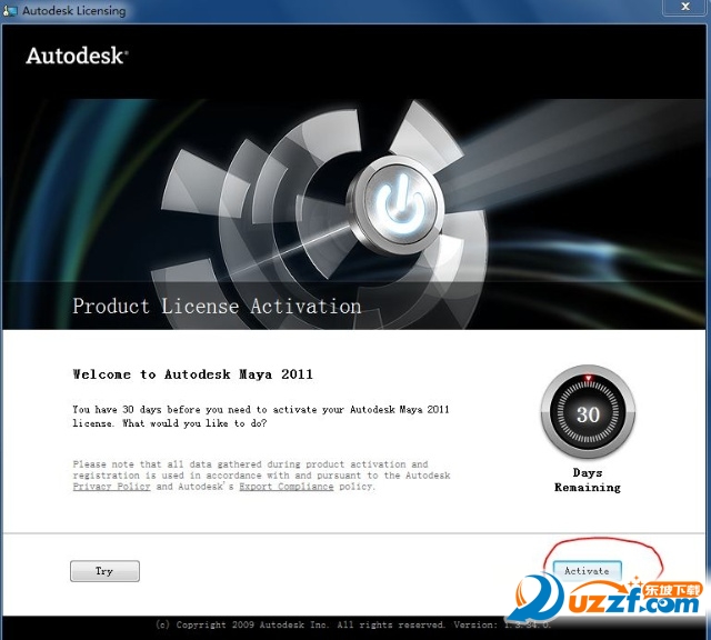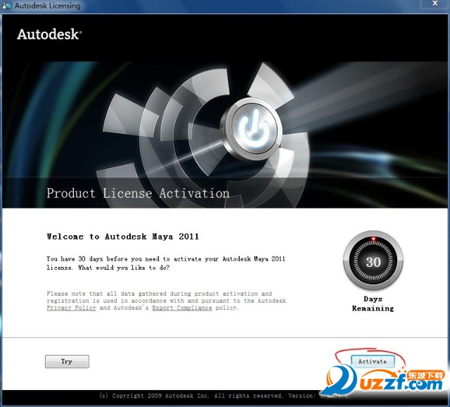 接下来,双击桌面的Maya2011图标,会弹出来激活界面