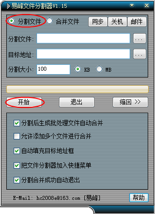 易峰文件分割器是一个可以将大文件进行指定大小的分割或是合并,应用于一些论坛或是网盘限制文件大小上传的时候。