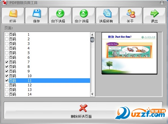 PDF页面删除器支持一次性删除多个页面,只需要用鼠标拖选页码选中,就可以删除。