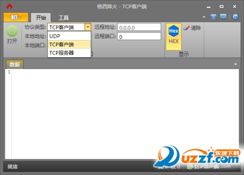 3、切换成功,工具栏上已经由串口切换为网络接口,网络接口支持UDP、TCP客户端、TCP服务器协议类型。