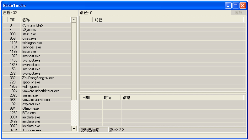 HideToolz进程隐蔽工具2.2 可以让你在电脑中运行的程序隐藏起来,像是没有运行过一样,用进程查看器根本看不到,而且能将自己也进行隐藏。