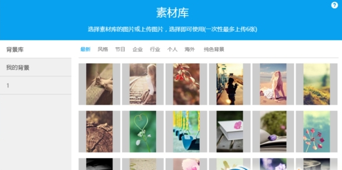 点击正上方的【背景】按钮,可以弹出背景素材库,为自己制作的文案选择漂亮的背景,除此之外,也可以自己上传漂亮的图片作为背景,如下图所示。