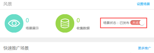 如果自己创作的易企秀场景不想让其他人观看,也可以点击右上方的场景状态关闭该场景,如下图所示。