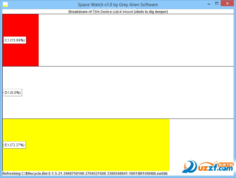 不幸的是,被占领的空间数据只能在主窗口,所以应用程序不提供更多的细节在某个文件或文件夹占用多少空间的驱动器。此外,由于效用是连续扫描修改,它可能会略有反应缓慢,当你访问目录。