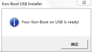 2、点击步骤一进行写入Kon-Boot 2.5到移动磁盘,这一步骤会格式化移动磁盘,在写入前先做好移动磁盘的备份