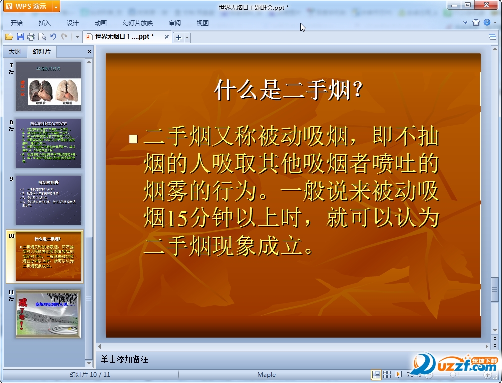 这是我们东坡下载为大家带来的一篇精美的2016年世界无烟日主题班会ppt,专门为中小学生准备,在即将到来的世界无烟日有准备相关主题班会的老师们可以来看看我们的这个精美ppt!