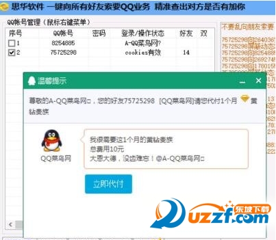没有钱购买各种qq业务怎么办,赶快来下载一件向所有qq好友索要QQ业务软件,自动一键向所有的qq好友索要各种各样的qq业务吧,看有没有土豪qq好友免费送给你。