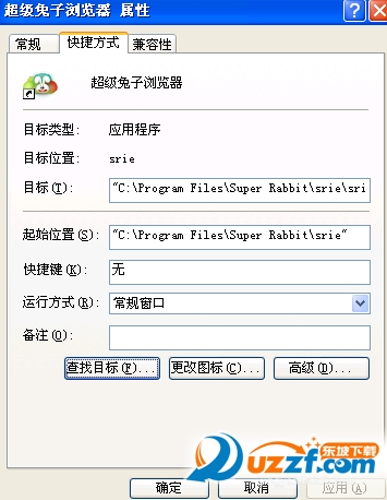 然后在属性对话框中,在其实位置一栏记住Super Rabbit\srie的位置。