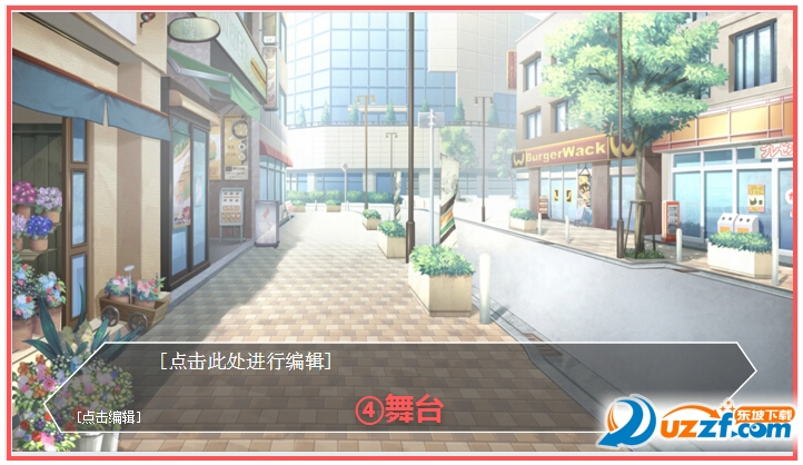 显示整体的画面效果,可在舞台上直接对立绘,文字等直接进行编辑. (也可在背景,人物,对话框,道具等上