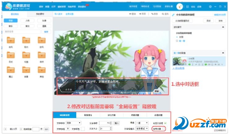 (小知识:对话框中文字最多不超过三行,避免超出对话框范围,影响游戏效果哦~)