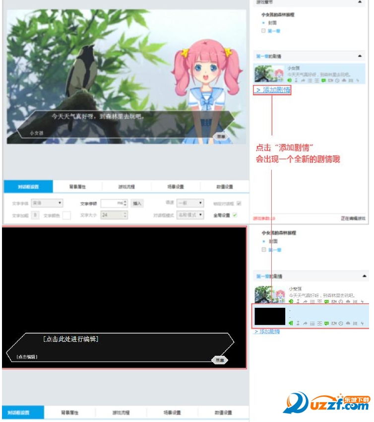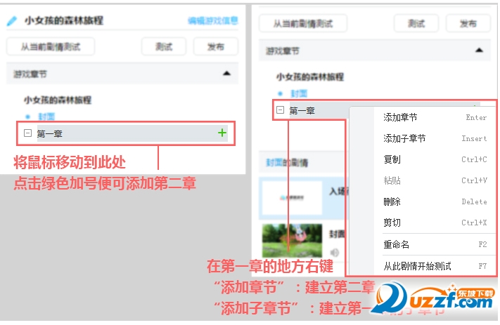 - 剧情栏:游戏章节:将游戏进行章节分段(点击鼠标右键可新增章节、新增子