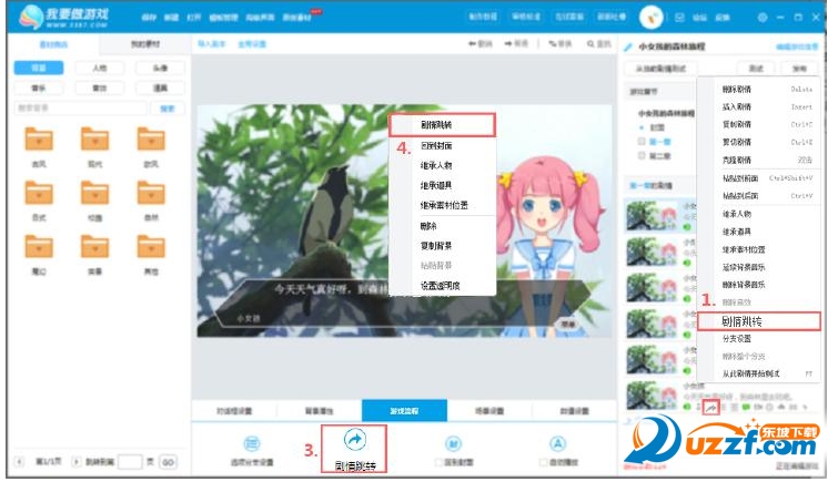 方法一:右击章节的最后一个剧情画面,选择“剧情跳转”,会跳出跳转设置框,选择要跳转的章节即可。