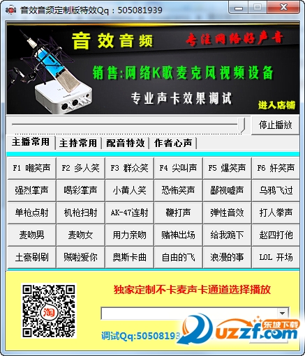 音效音频商城最新开发不卡麦主持特效,收录了更新更多最新的音效特效,适合YY IS QQ QT 9158 繁星 等各大语音平台使用,是一款主持 主播 麦手带动现场气氛的音效利器, 软件界面简洁 操作方便 放心使用。