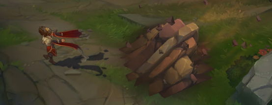 任何突进、冲刺或者被强制击飞到E技能范围内(或在范围内使用突进、冲刺,被击飞)的敌方单位,会触发活性石头陷阱,每个被触发的石头将突刺目标并造成40/52.5/65/77.5/90(+0.2AP)点伤害,最多触发4个石头。