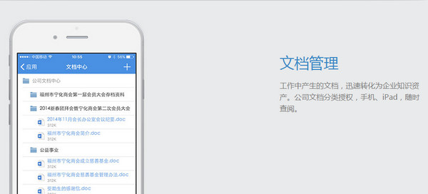 工作中产生的文档,迅速转化为企业知识资产。公司文档分类授权,手机、ipad,随时查阅。