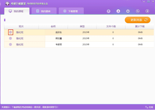 2、进入“我的课程”界页,会依次罗列出学员所报课程,选择需要下载的