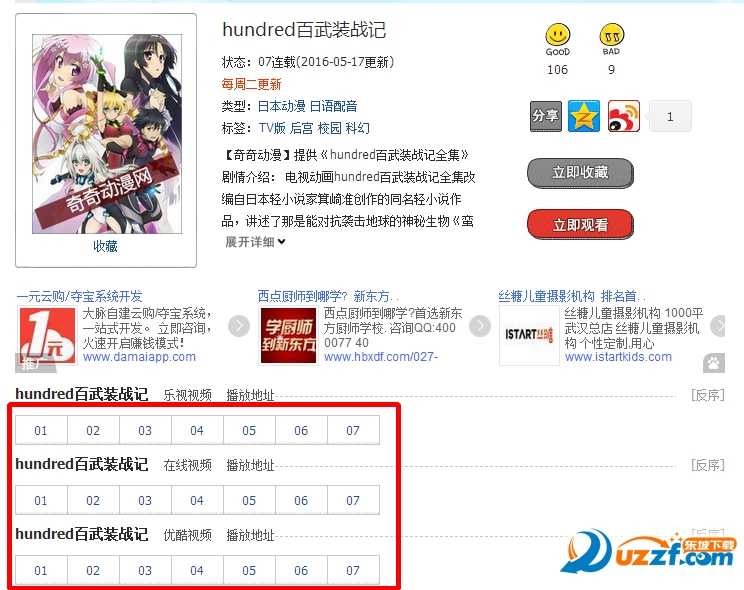 选择需要观看的动漫集数。