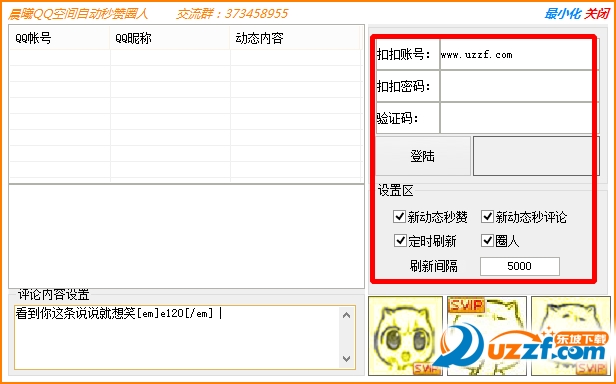 登录qq账号和密码,设置相关的秒赞参数即可开始挂机刷赞了。