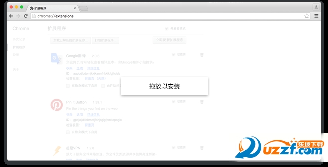 3、将下载的caoliao.crx文件直接拖拽至扩展中心