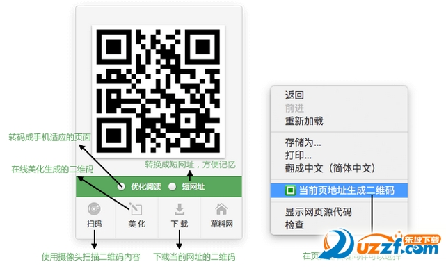 3. 点击“美化”按钮,使用“草料二维码”公司的免费服务对二维码进行在线美化。