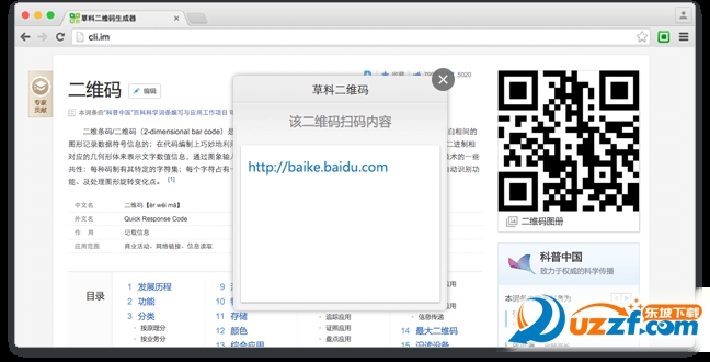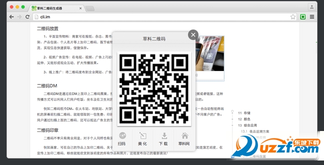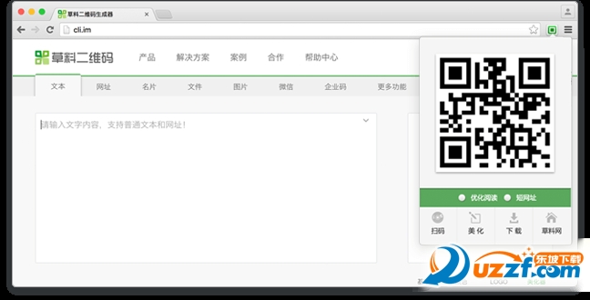 生成图案简单的短网址二维码 如果链接过长,生成的二维码图案会太复杂,不易于扫描,还可以选择点击弹出窗上的短网址选项,转成短网址二维码,图案变的简单多了。