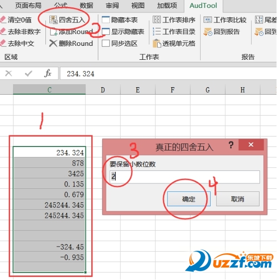 说明:在编制底稿、报表、和附注的时候经常需要统一保留小数,但是excel自带的功能只能设置显示的小数,但是更多的小数位只是被隐藏了,导致计算报表结果经常出现尾差。该四舍五入功能可以将其直接转换成想要的小数位数的值。