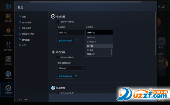 战网客户端→设定→游戏设定,可以用来更换语音包,不知道怎么语音的,就按1旁边的`键。