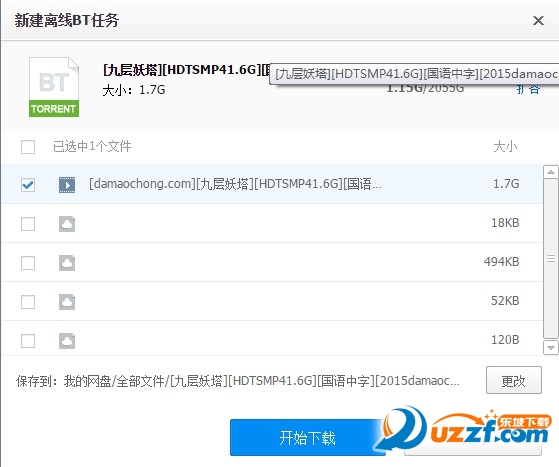 4.填入你刚才复制的磁力链接,点击确定,在弹出的界面里点击开始下载即可,所有正规资源几乎都是秒下100%