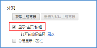 在弹出的设置页面中勾选“显示主页按钮”,然后点击【更改】