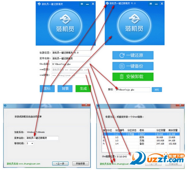 装机员一键还原支持OEM自定义背景、ICO、标题、链接、启动菜单名等,真正做到完全属于自己的一键还原,本工具支持xp、win7、win8、win10。
