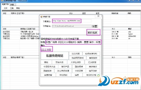 我们选择解析结果中的"[22.2MB]"清晰度进行下载: