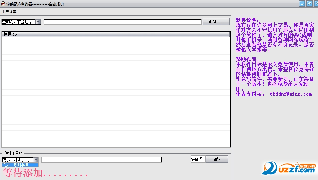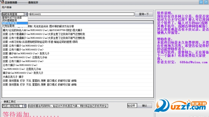 企鹅足迹查询器其实是帮助你查询自己或者他人的上网足迹,通过对方的qq或者微信甚至是网络昵称,能够查到对方的姓名、联系方式甚至住址,还可以查看TA是否有什么网上的不良记录,都可以看到,非常的方便,大家有需要的就来下载吧。