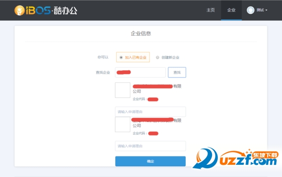 2.登陆酷办公之后,点击“企业”模块进入。如果是员工注册,并且已经有管理员创建好企业,那么直接点击“加入已有企业”,加入企业时,直接输入企业代码即可查找加入;如果是管理员账号注册登录,那么就需要先创建企业