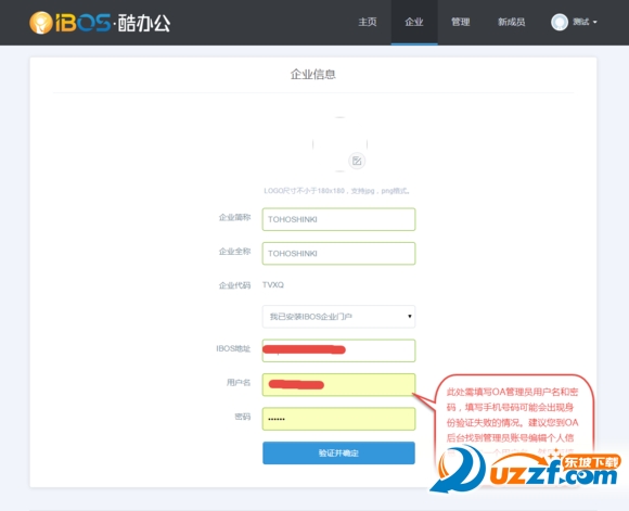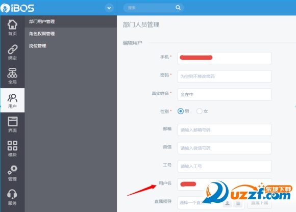 4.IBOS目前新版本OA在安装时所设置的管理员账号都统一默认为手机号码,因此如果是直接先到酷办公注册然后绑定OA的用户,在进行绑定时需要先登录OA后台找到管理员账号,编辑个人信息添加一个用户名,然后再到IBOS酷办公里面写入管理员的用户名和密码