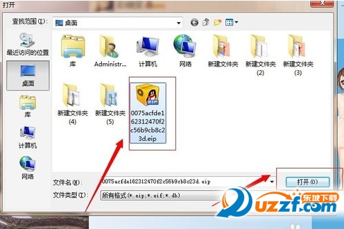 在【打开】对话框里,找到刚刚下载的QQ表情包,选中表情包,然后点击【打开】;