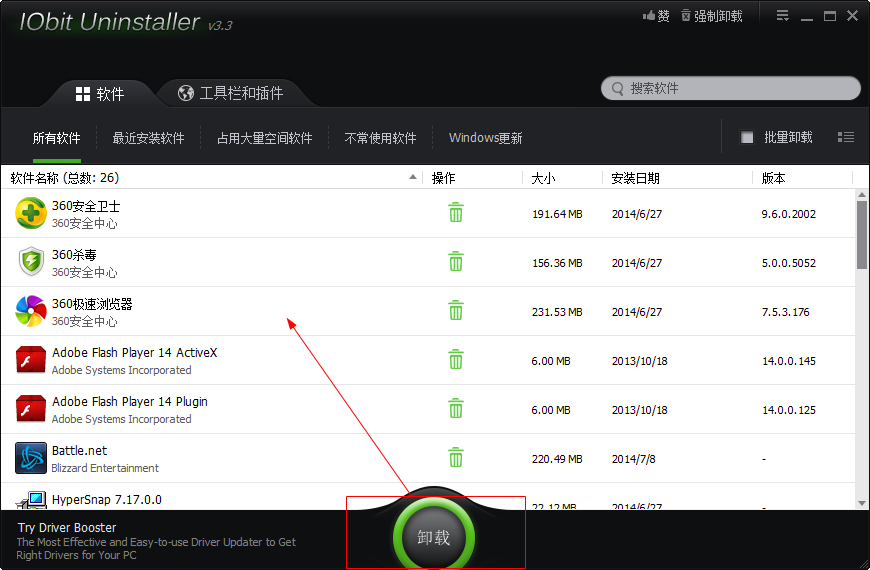 IObit Uninstaller支持三种:卸载、强制卸载、批量卸载。