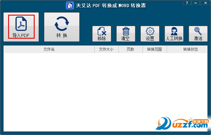 2. 在主操作界面中找到并点击导入按钮, 然后把所需要转换的PDF文件导入到转换队列中。