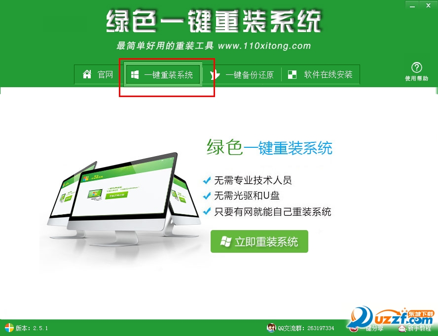 对于不会重装系统的电脑用户来说,一款傻瓜式的一键重装系统软件是非常有必要的,很多需要重装电脑才能够解决的系统问题,现在都可以简单解决,绿色一键重装系统工具为你带来更多便捷。