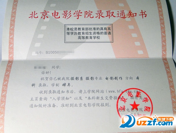 北京电影学院录取通知书预览