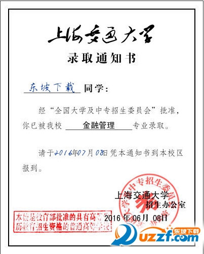 1、在线生成上海交通大学录取通知书