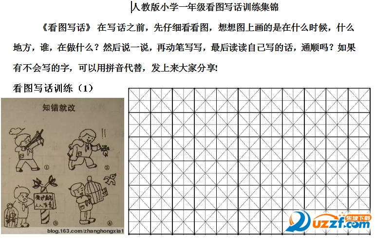由于家里有一年级的学生,考试的时候前面的知识都能打上100分,但是最后面的看图说话却扣了一半的分,真是着急,没办法只能网站找些资料,让他练习了。