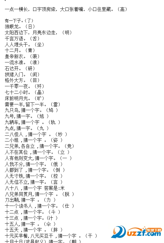想要玩玩猜谜游戏吗?小编为你带来小学生字谜大全,适用于各种场合,可用来逗趣,娱乐,还能用于课堂活跃气氛,还为你提供谜底哦,有需要的话就来下载吧!
